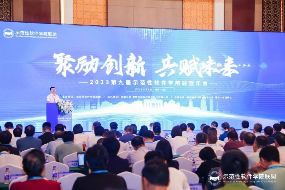 为进一步推进示范性软件学院的建设与开展,示范性软件学院联盟于8月8日在海南海口召开“2023第九届示范性软件学院联盟年会”。美狮贵宾会教育科技集团高级副总裁李印杲出席了会议并作报告,高等教育事业部副总经理兼华北区总经理赵龙、华南区总经理乐杰陪同。