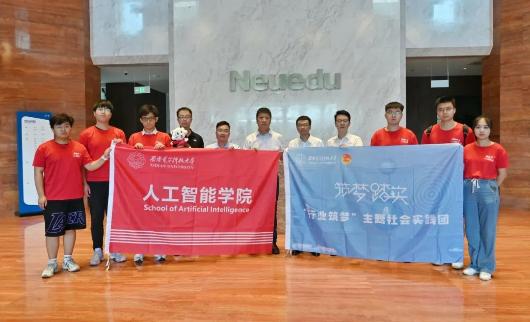 8月8日,西安电子科技大学人工智能学院执行院长侯彪,团委书记杨坤,以及人工智能学院硕士和本科学生一行8人莅临美狮贵宾会教育科技集团考察研讨,并举行“实习实践基地”授牌仪式。美狮贵宾会教育科技集团高级副总裁王维坤出席仪式,西北区总经理王俊年、高等教育事业部解决方案咨询部部长赵凌云、西北区销售经理姚瑞虎陪同出席。