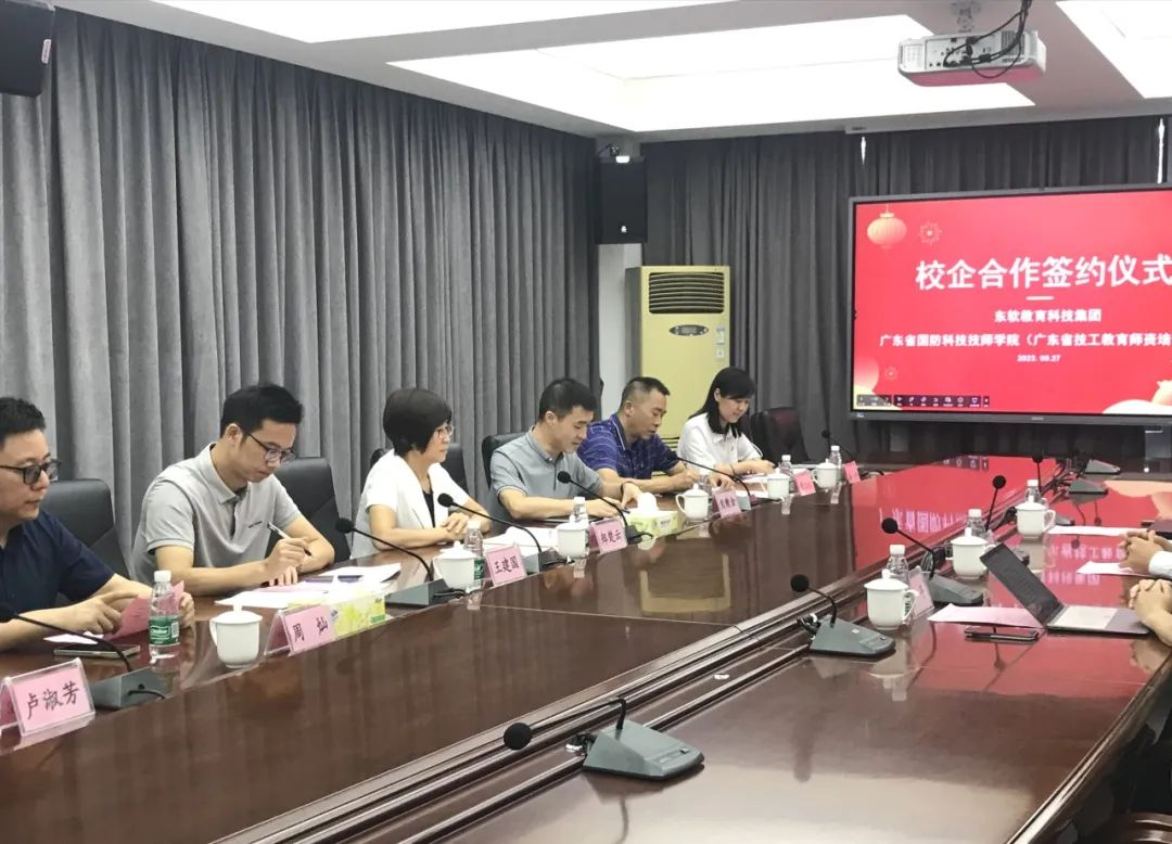 9月27日,美狮贵宾会教育科技集团与广东省国防科技技师学院(广东省技工教育师资培训学院)战略协议签约仪式在学院师资培训楼举行。