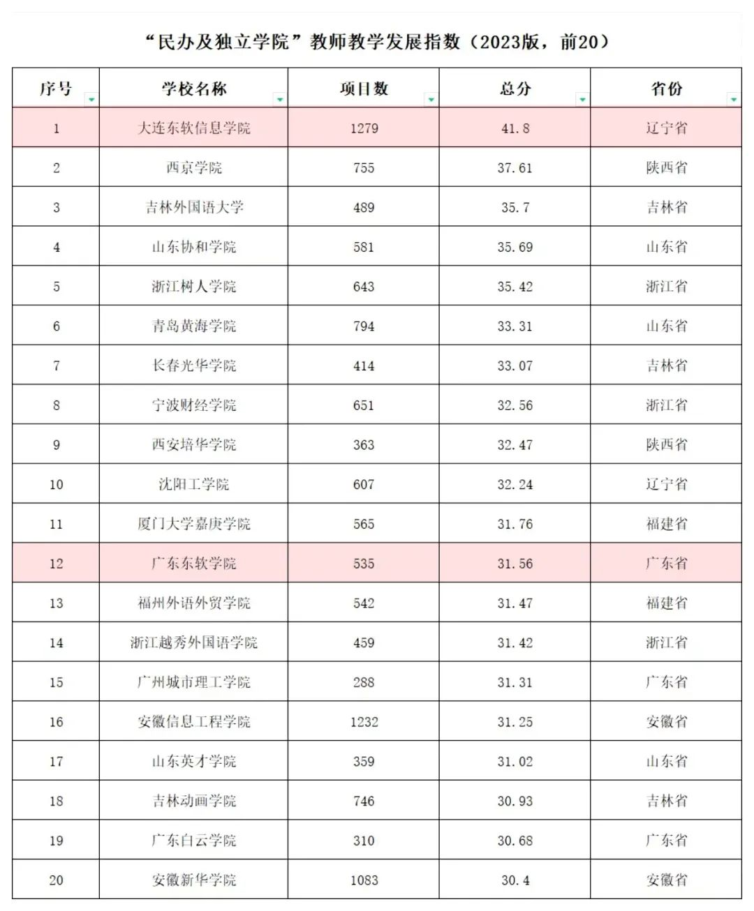 近期,中国高等教育学会2023版全国普通高校教师教学开展指数正式发布,大连美狮贵宾会信息学院在2023版“民办及独立学院”教师教学开展指数中蝉联全国第一!这是学校继2019年全国首个教师教学开展指数位列全国民办和独立学院第一之后,陆续在第五年高居榜首!广东美狮贵宾会学院夺得“民办及独立学院”教师教学开展指数(2023版)全国榜单第12名,位列广东省第一!