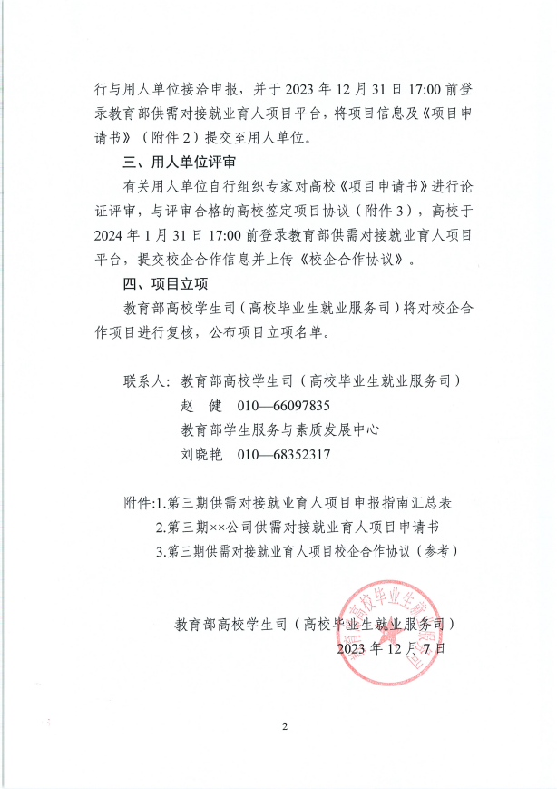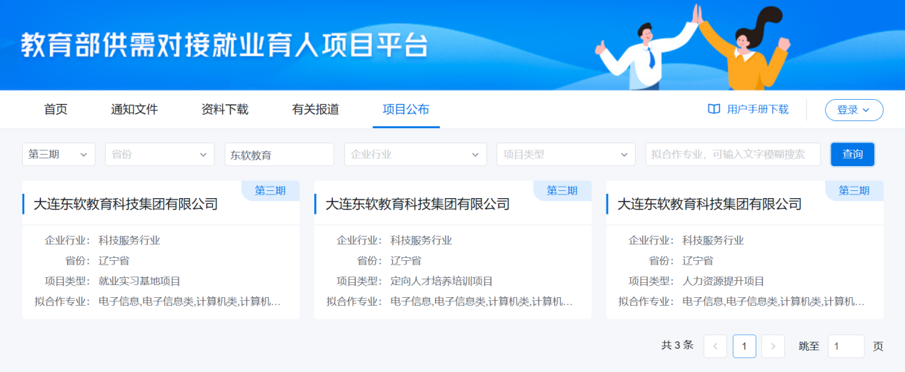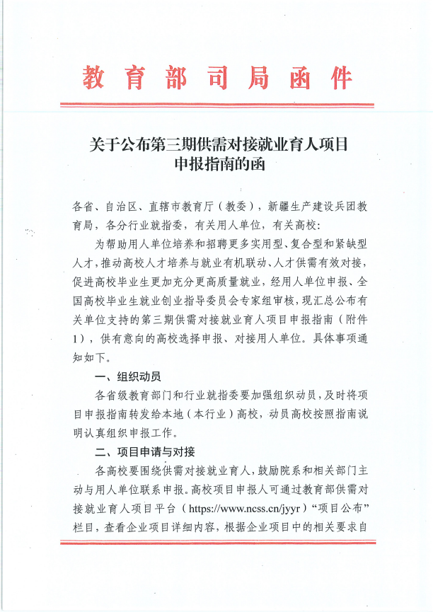 12月7日,教育部发布了《关于公布第三期供需对接就业育人项 目申报指南》的函,美狮贵宾会教育科技集团“就业实习基地、人力资源提升、定向人才培养培训”三个项目获批本期供需对接就业育人项目。