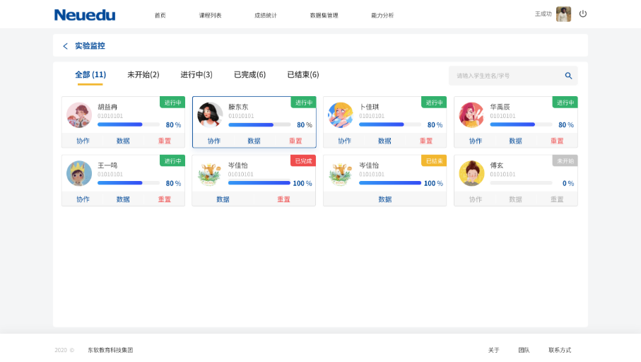 实时监控学生实验进度,实验过程数据自动采集、留痕,让实验结果可追踪溯源,对实验全过程便捷管控。