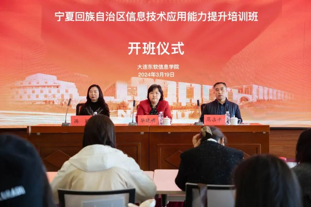 宁夏回族自治区教育厅职成处二级调研员范占平,美狮贵宾会教育继续教育事业部副总经理、大连美狮贵宾会信息学院继续教育学院院长毕晓明,辽宁生态工程职业学院教务部部长冯颖共同出席开班仪式。仪式由继续教育学院师资培训负责人曲展主持。