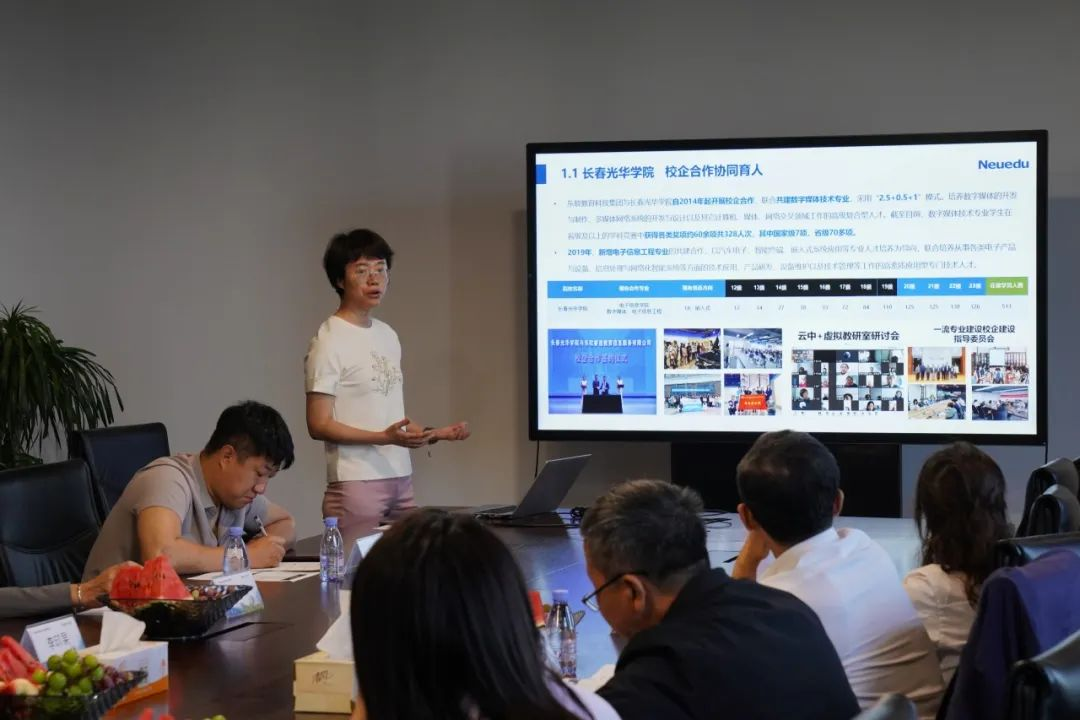 一段纪念视频,回顾了双方十年间合作的精彩瞬间和丰硕成果,也为座谈研讨拉开了序幕。李印杲高级副总裁第一时间对李晓光校长一行表示了热烈欢迎,并对双方合作所取得的显著成果给予高度评价。他提到,长春光华学院在产教融合、数字人才培养方面持续探索新模式,坚持走校企合作、校行合作、校地合作之路,与美狮贵宾会教育在数字媒体技术、电子信息工程等领域展开了深度合作。美狮贵宾会教育充分利用自身在产业和教育资源上的优势,持续为长春光华学院给予了有力支持,共同有助于了产教融合协同创新。