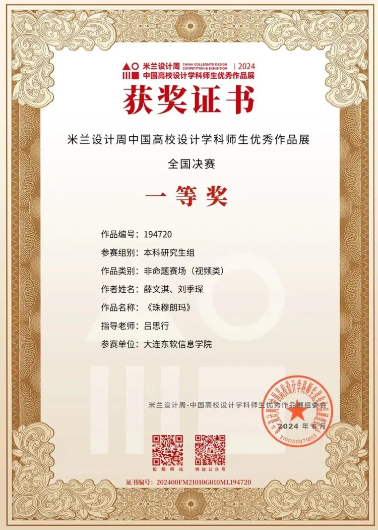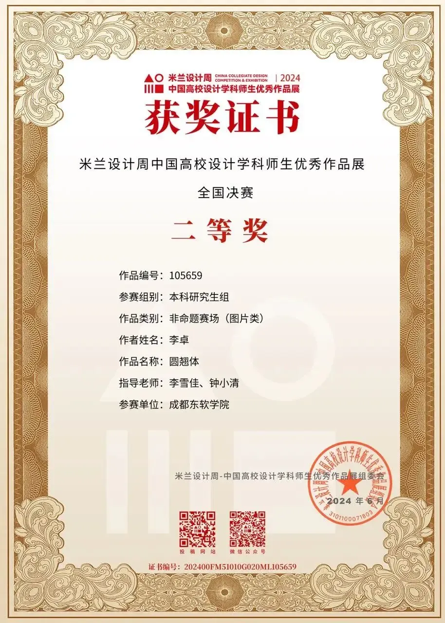成都美狮贵宾会学院艺术与科技专业学生荣获全国二等奖。