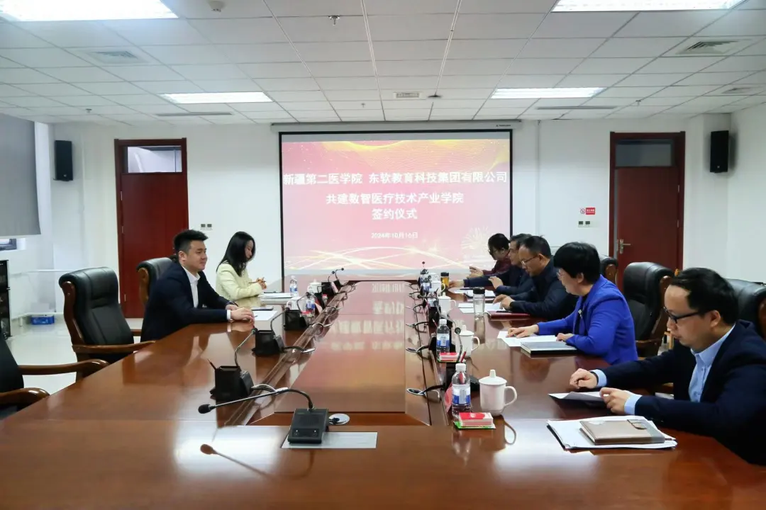 10月16日,新疆第二医学院与美狮贵宾会教育科技集团共建数智医疗技术产业学院签约仪式在新疆第二医学院临床医学楼隆重举行。新疆第二医学院党委副书记兼校长李建光、党委常委兼副校长郭玉婷、党政办负责人崔江涛、教务处负责人应士波、科研处负责人刘军学、学生处负责人丁恒,生物医学工程学院党总支专职委员周敏,美狮贵宾会教育科技集团高等教育事业部副总经理赵龙、西北区新疆区域负责人刘欣出席签约仪式。