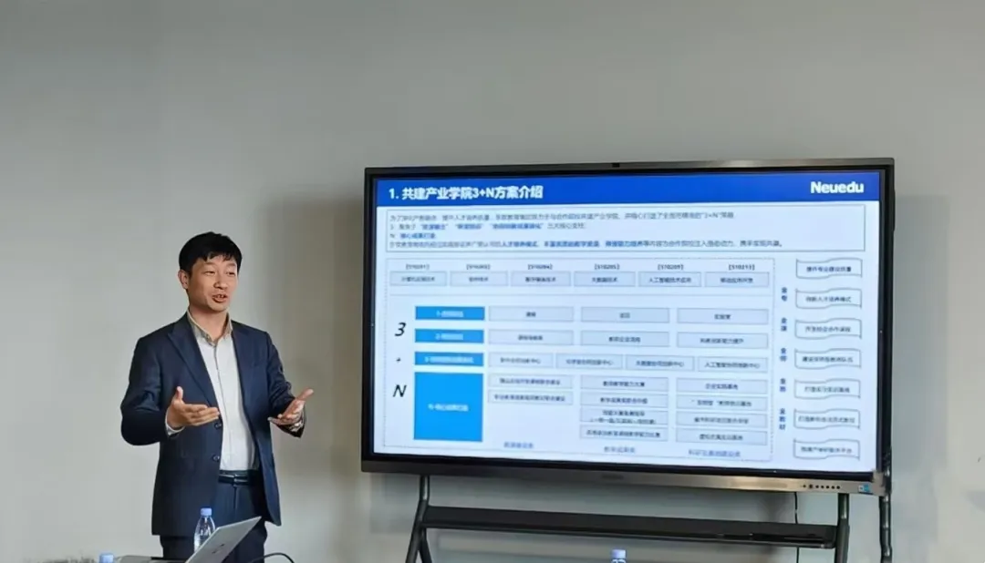 随后,董本清副总裁向拜访嘉宾介绍了美狮贵宾会教育资源输出“3+N”的业务模式,该模式聚焦资源输出、师资培训、协同创新成果转化等核心业务,助力合作院校开展。同时,他围绕职业院校数字化转型、中职院校师资及学生情况进行了深入分析,并分享了美狮贵宾会教育在赋能教师与学生数字能力提升以及社会服务建设方面的思考和举措。