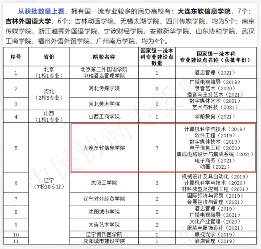 近期,中国民办教育协会高等教育专委会发布了《民办高校国家级一流本科专业建设点全览》。据统计,全国共有21个省份72所民办高校的152个本科专业获批国家级一流本科专业建设点,其中,大连美狮贵宾会信息学院共获批7个国家级一流本科专业建设点,获批数量居全国民办高校第一!