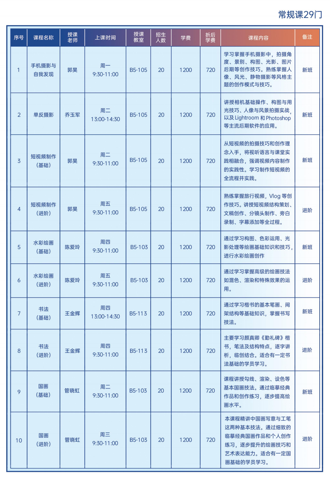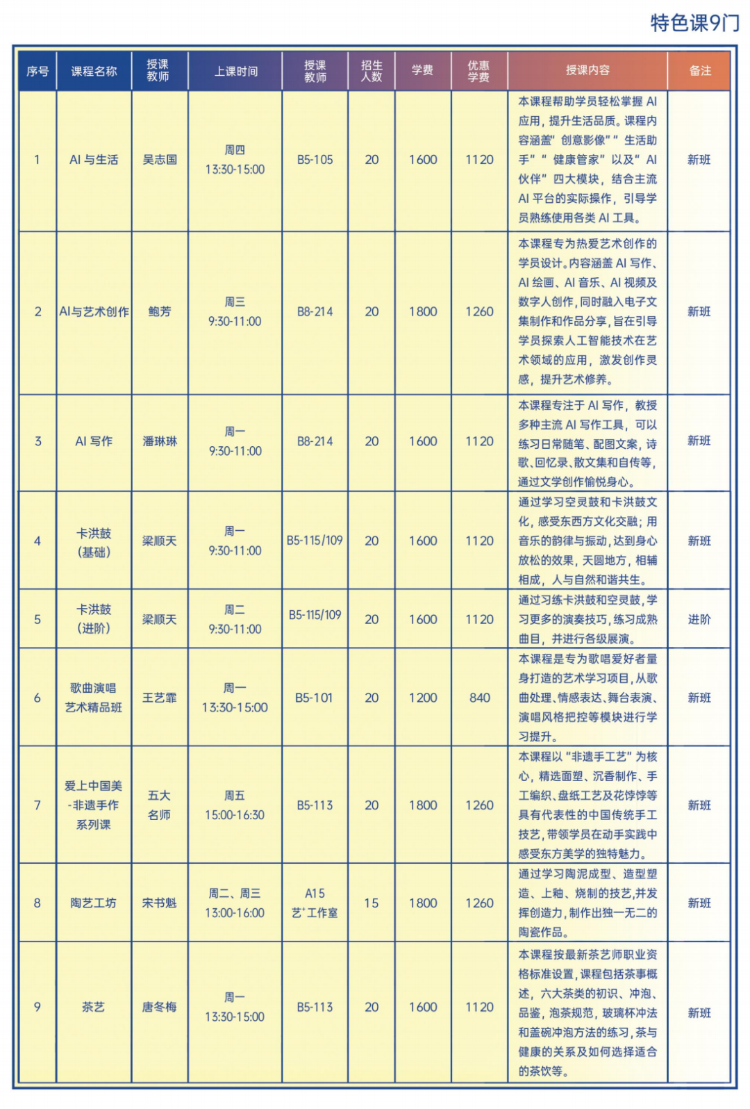 4.课程安排和时间可能会根据实际情况调整,请关注学校通知;