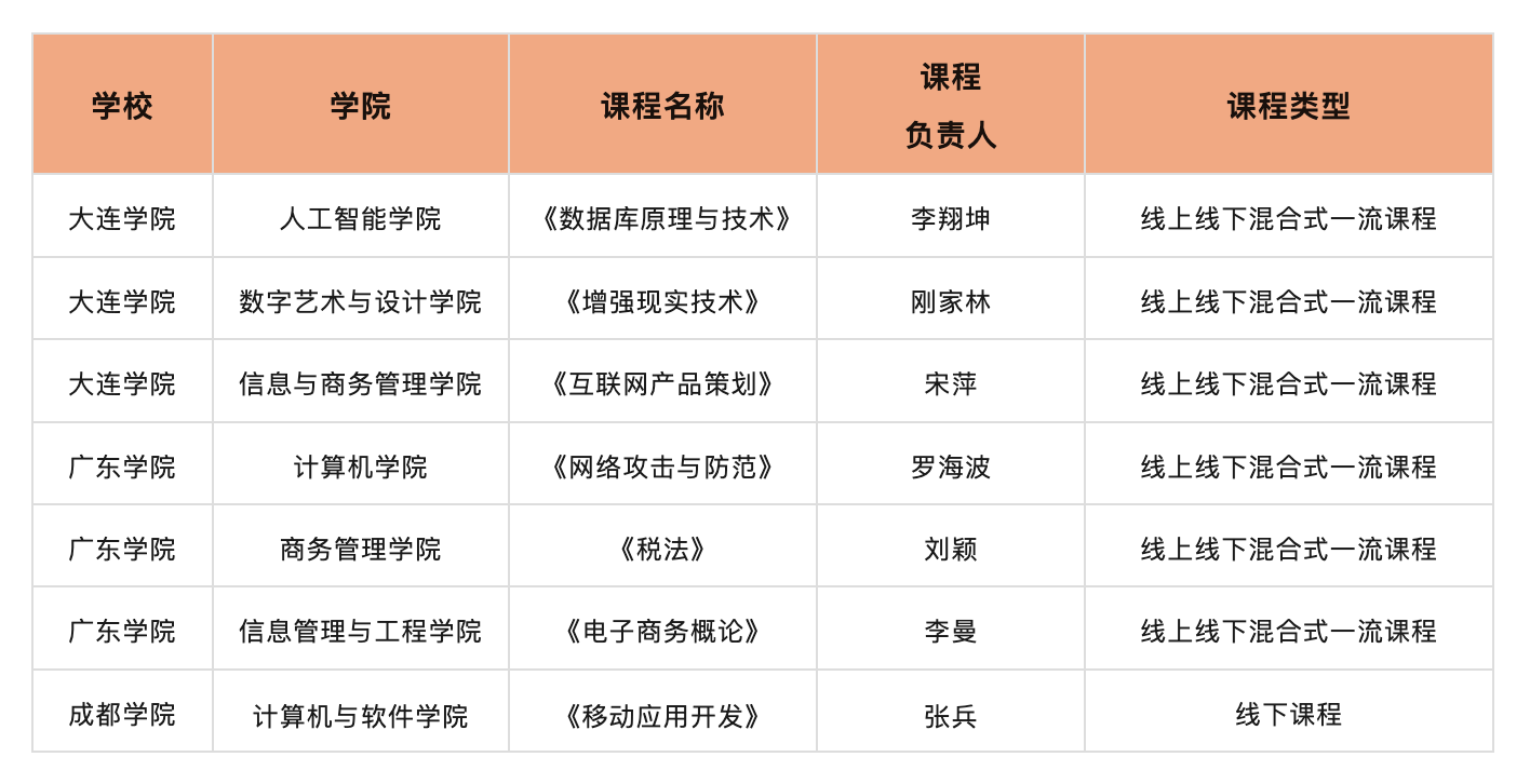 8月21日,教育部发布了《关于第三批国家级一流本科课程认定结果的公示》。本次拟认定5999门课程为第三批国家级一流本科课程,其中,线上课程1000门,虚拟仿真实验教学课程500门,线下课程1842门,线上线下混合式课程2206门,社会实践课程451门。根据公示结果,大连美狮贵宾会信息学院、广东美狮贵宾会学院本次分别入选3门国家级一流本科课程,成都美狮贵宾会学院有1门课程入选。大连、广东两校拥有的国家级一流本科课程总数分别位列各自所在省份民办高校首位。