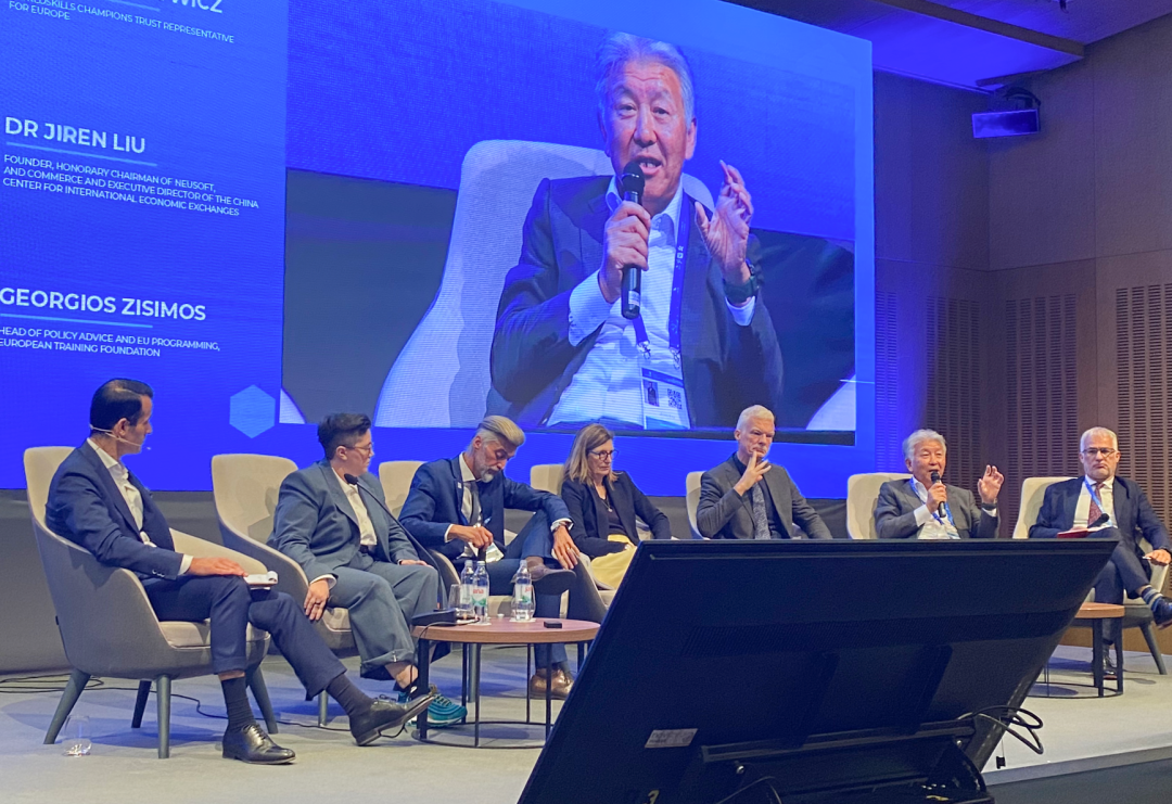 会议次日,刘积仁又应邀作为发言嘉宾参加了“职业教育与培训在地缘战略劳动力转型中的作用”主论坛活动。他分享了美狮贵宾会在面对全球性挑战时,如何顺利获得校企合作、产教融合及数字化手段,有效提升人才技能适应性、韧性与创新能力的实践案例,为全球范围内的相关议题贡献了中国智慧与企业方案。