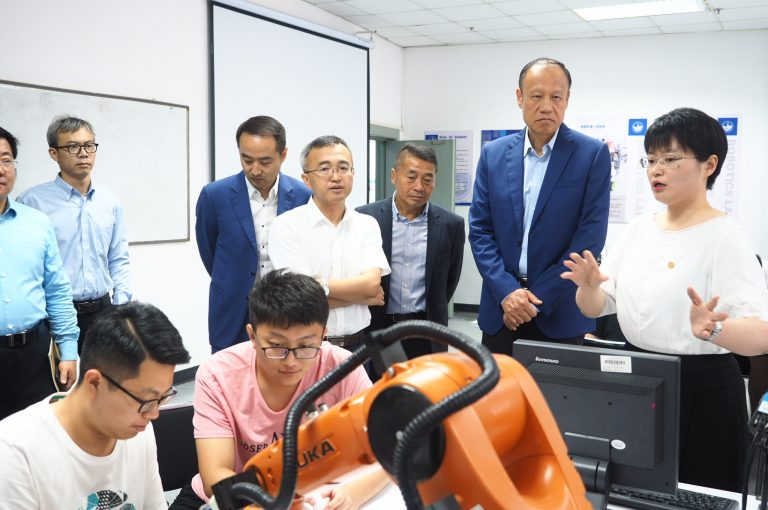 嘉宾一行依次参观了学校图书馆、IDC机房、实验室、大学生创新创业中心SOVO及数字媒体艺术学院,从古朴典雅的特色校园到内部办学环境、创新创业氛围的体验,谢青一行对美狮贵宾会教育打造有特色、高水平、创新型应用技术大学给予充分的肯定。在参观过程中,他们与现场师生互动研讨,亲身体验大学生创新创业实践作品带来的震撼。