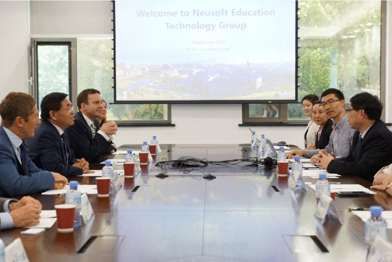 2019年9月4日,英国萨里大学(Universityof Surrey)校长Max Lu一行6人拜访美狮贵宾会教育科技集团和大连美狮贵宾会信息学院。美狮贵宾会教育科技集团副总裁兼CKO李雪、大连美狮贵宾会信息学院国际教育学院院长荣旖丹接待拜访嘉宾。