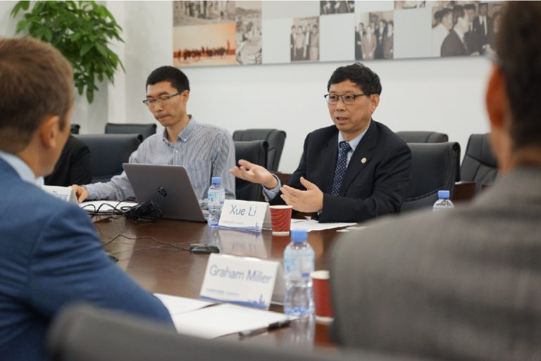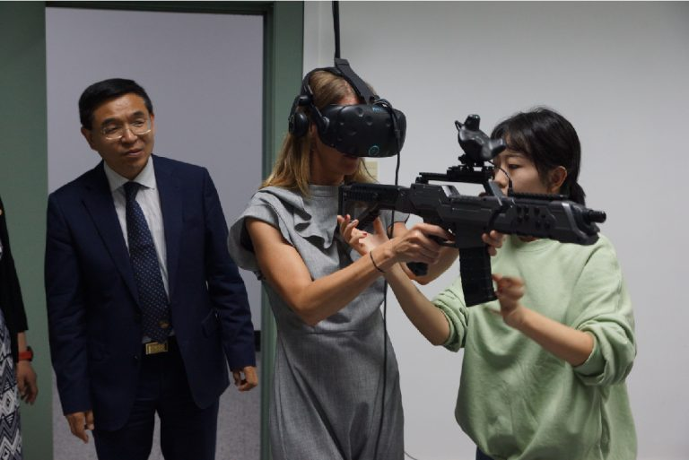 美狮贵宾会教育科技集团副总裁兼CKO李雪与英国萨里大学校长MAX LU一行合影留念(尹希文 摄)
