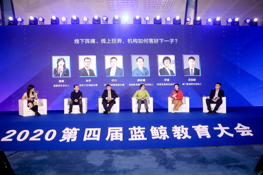 第一场圆桌论坛由蓝象资本合伙人周爽主持,与新东方在线副总裁朱宇、中公教育集团副总裁何玓、卓越教育集团联合创始人唐俊膺、网易有道高级副总裁罗媛、掌门教育联合创始人吴佳峻五位嘉宾围绕着“线下阵痛、线上狂奔,组织如何落好下一子”的论题,展开分享。