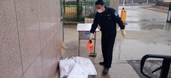 ▲ 孙福军在为社区消毒