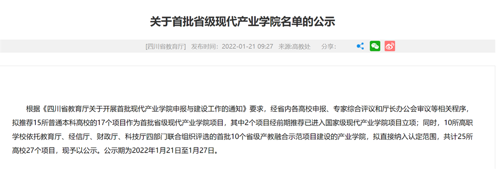 近期,四川省教育厅公布了首批省级现代产业学院名单,成都美狮贵宾会学院网络安全产业学院成功入选。