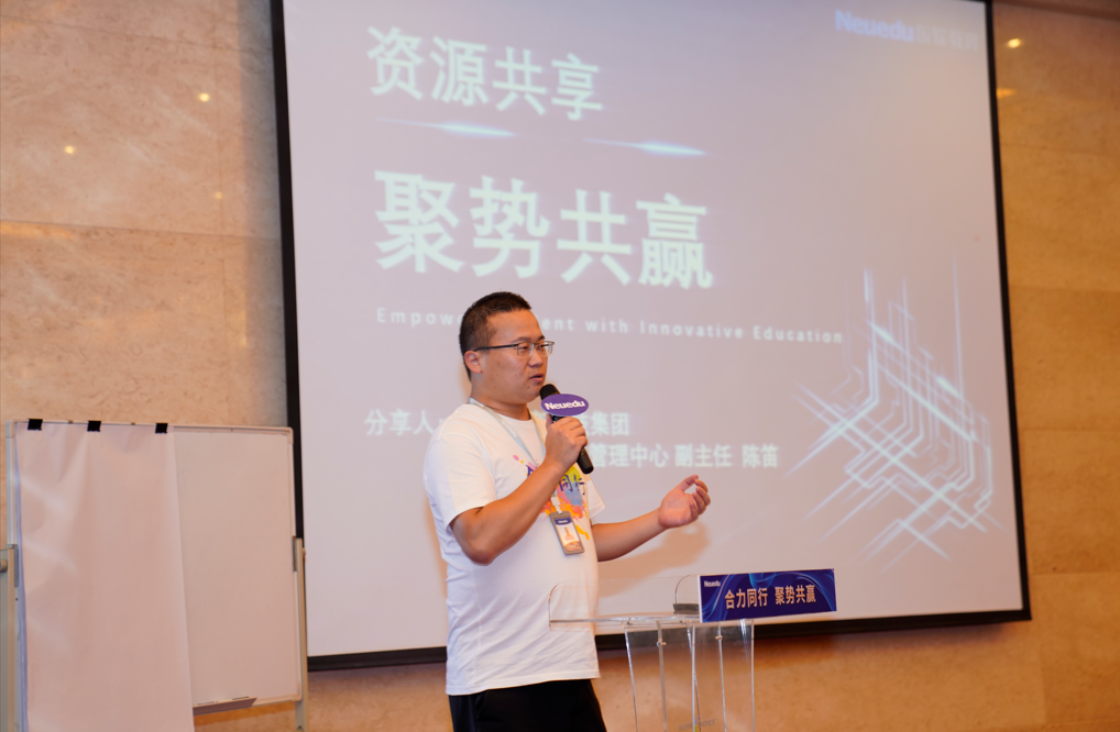 分享会上,华南区副总经理陈阳、职业教育事业部市场销售管理中心副主任陈笛结合多年市场拓展经验和思考,分别从合作共享共赢、模式创新赋能等方面进行了生动案例的分享。