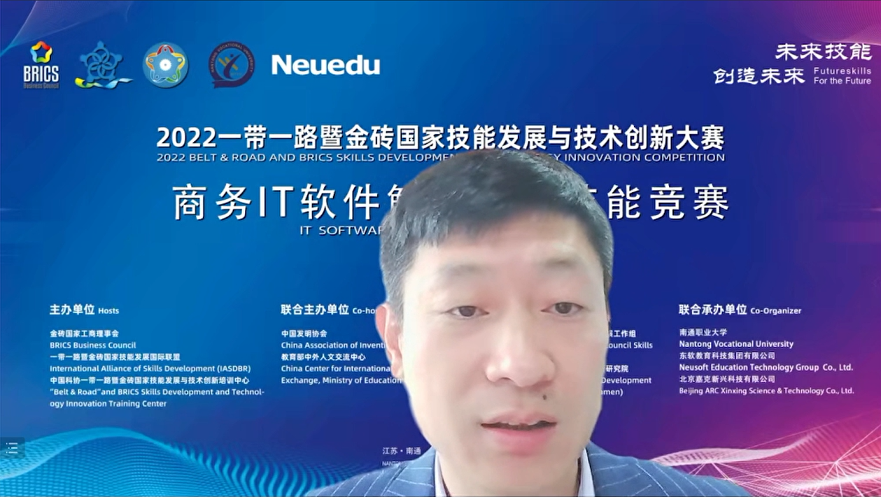 10月26日,2022“一带一路暨金砖国家技能开展与技术创新大赛——商务IT软件解决方案”赛项开幕式在南通职业大学举行。金砖国家工商理事会技能开展工作组主席、一带一路暨金砖国家技能开展国际联盟理事长刘振英博士,南通职业大学校长褚金星教授,南通职业大学电子信息工程学院院长廖忠智教授,美狮贵宾会教育科技集团副总裁董本清博士,裁判长无锡职业技术学院刘培林教授,及相关部门负责人等代表参加开幕式。开幕式由南通职业大学电子信息工程学院院长廖忠智教授主持。