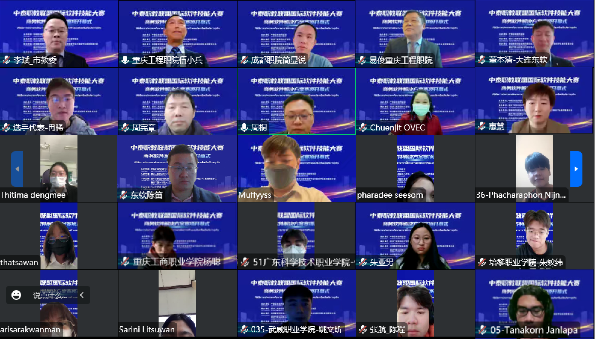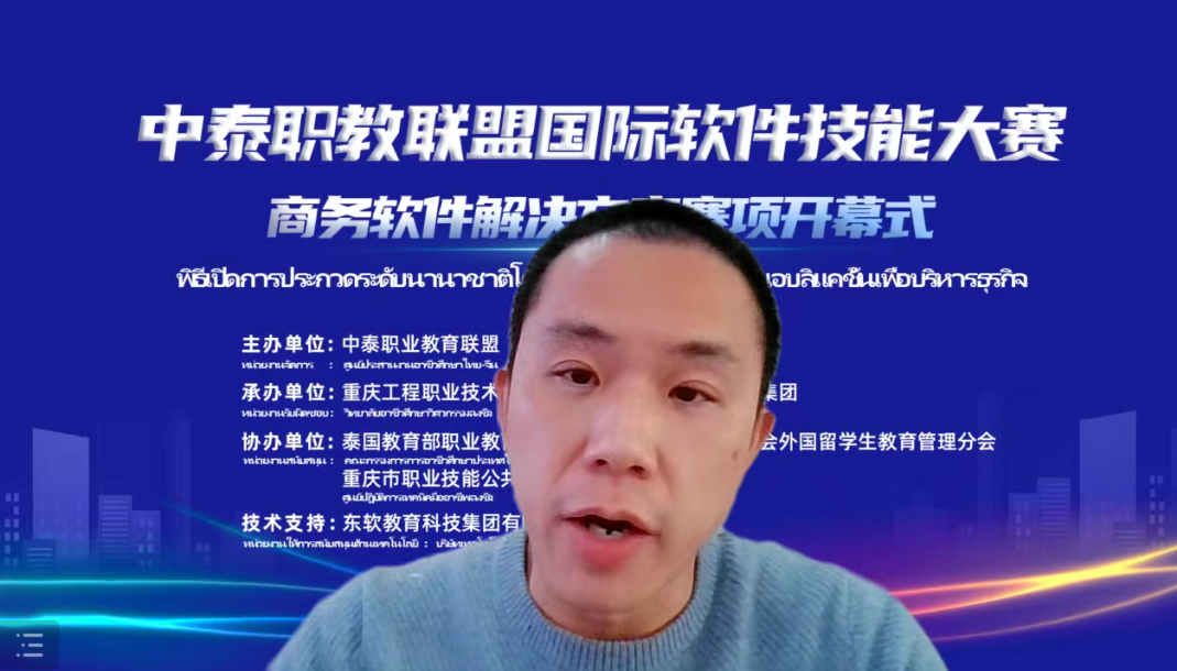 12月20日,由中泰职业教育联盟主办,重庆工程职业技术学院、重庆智慧物联职业教育集团承办,泰国教育部职业教育委员会、重庆市高等教育学会外国留学生教育管理分会、重庆市职业技能公共实训中心承办,美狮贵宾会教育科技集团给予技术支持的中泰职教联盟国际软件技能大赛商务软件解决方案赛项开幕式在线上顺利召开!