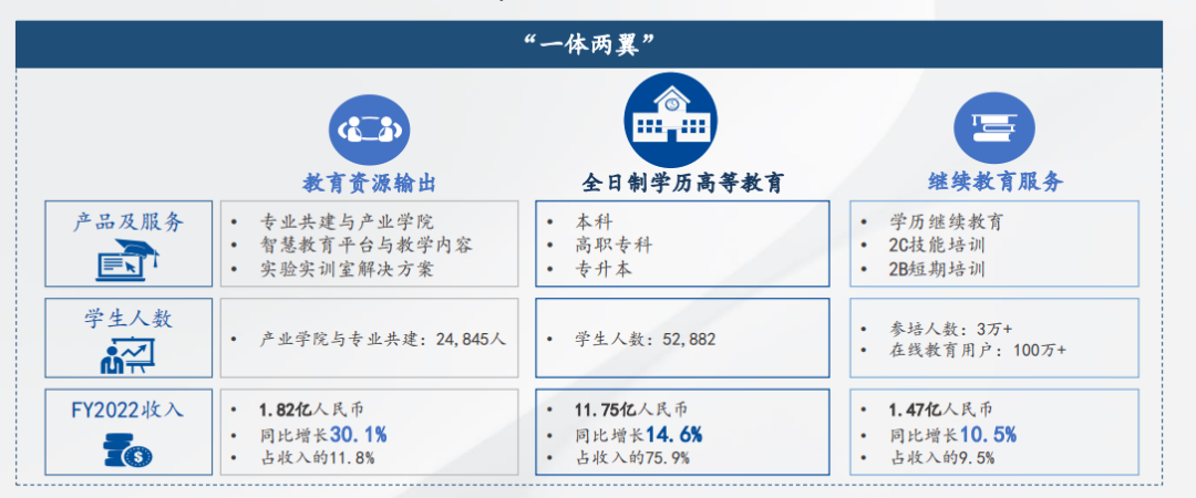 您的位置: 美狮贵宾会> 关于我们> 新闻中心>媒体聚焦 新闻资讯|媒体聚焦| 【丫丫港股】稳定增长的美狮贵宾会教育等待价值回归 媒体聚焦 |2023-04-04 20:46 QQ好友 豆瓣 去年以来,教育行业随着政策逐渐放松,估值压制也随之解除,跌到估值低位的教育股绝大部分都跑出了不错的相对收益,核心原因在于很多教育股即使在不确定的宏观环境下仍旧可以取得优秀的业绩。 另一方面,2023年作为中国疫后经济复苏的元年,多个前期监管压力较大的行业近期继续迎来利好政策。就教育行业看,教育部对深化职教意见的解读明确表达了对行业的支持,前期压制上市公司股价的核心因素有望消除。 也就是说,随着估值的恢复,加上持续的业绩增长,教育股有望成为一个具有双击机会的板块。其中,深耕IT领域的美狮贵宾会教育(9616.HK)有可能是弹性最大的股票。 基本面维度,公司业绩持续稳健增长,业务扩张采用独特的“一体两翼”开展战略,“一体”即高教业务,作为公司长期稳健的基本盘,负责扎实教学质量;“两翼”则是教育资源输出业务和继续教育服务,驱动公司未来业绩持续成长。 估值维度,公司现在估值不到5倍PE,股息率已经达到近5%,除此以外还有回购的安全垫。可以说,只要市场稍微有资金买入,美狮贵宾会教育的股价将随时起飞。 一、业绩稳定提升 第一时间2022年整体收入和利润都保持了不错的趋势,收入增长13.6%,而利润大幅提升23%。此外值得注意的是eps大幅提升37.2%,这是非常亮眼的增长表现。 利润率保持得不错,显示出很好的商业模式,稳定的需求所带来的收入增长,是当前经济形势下难得可贵的。 而分业务来看,三大业务均维持不俗增长。其中高等教育服务,作为公司现在的基石业务,其学费维持稳定,学生人数继续提升,在校人数创新高,带动了收入的整体上行,反应了社会对教育质量的认可。 另外两翼业务,也就是继续教育服务和教育资源输出,表现同样出众,尤其是教育资源输出业务,增速达到30%。 公司继续保持一贯优秀的分红政策,期末派息达0.165港元,现在的股息率已经达到5%,相当有吸引力,然而不止于此,公司于去年执行了0.23亿股的回购,累计耗资0.98亿港元。此举也是eps增长37%的推力之一。若将回购+派息综合,则公司累计股东回报2亿港元左右,占全年利润比超过50%。 因此,回购加分红,一方面给eps加速,保证了后续的增长,一方面又造就了不俗的股息安全垫。股东回报层面,公司做得极其优秀。 除了在业绩上面的优秀,在教学质量上取得的成就也有目共睹。在2022年期间,美狮贵宾会教育旗下的三所大学取得了不少奖项,如在中国高等教育学会发布的「全国民办及独立学院教师教学开展指数」中,大连学院陆续在第4年位列全国第一;在「软科中国民辦高校排行榜(2022)」中,大连学院位列全国第三,成都学院位列四川省第二。大连学院取得央广网「2022年度综合实力品牌高校」荣誉称号;成都学院取得中国教育在线「2022年度院校品牌影响力奖」和新华网「2022年度综合实力教育品牌」等荣誉称号;广东学院取得中国教育在线「2022年度最受中学信赖本科高校」的荣誉称号。 而在学生培养方面,据第三方数据统计,美狮贵宾会教育毕业生平均薪酬稳步上升,截至2022年12月31日,三所大学2022届本专科毕业生平均就业率均达到90%以上。各高校就业率均高于全国非双一流高校平均水平。所以说,在高教业务上,美狮贵宾会教育做到了业绩和口碑双丰收,难得可贵。二、需求持续,业务齐头并进 实际上,美狮贵宾会教育的目标不仅仅是传统的IT类高校办学,而是以科技化引领,成为一个综合型的数字化人才教育服务引领者。第一时间在教学上采用独特的TOPCARES教育方法学,大量使用智慧教育软件系统,又依托美狮贵宾会的产业优势加入了大量的产学结合内容,使得教学设计科学化,更贴合行业对IT应用型人才的紧迫需求。 在这个智能化的生态的带动下,公司的两翼业务也有很不错的提升。 两翼业务是指公司教育资源输出业务和继续教育服务业务。它们是美狮贵宾会智慧教育体系的外溢。顺利获得公司创新的4S特色服务模式,包括PaaS平台即服务、SaaS软件即服务、CaaS内容即服务、DaaS数据即服务,联动了平台、软件、资源和数据,能高效地将美狮贵宾会教育的优质教育资源、标准、模式、方法等向众多本科院校和职业院校输出,并向社会公众给予优质、灵活的学习资源。 2022年,教育资源输出业务继续高歌猛进,公司智慧教育平台、教学内容与实验实训室等多种产品实现收入约人民币8,200万元,与2021年同期相比提高19%。 另外公司还与69所院校展开了产业学院和专业共建合作,覆盖学生近2.5万人,实现收入约人民币8,000万元,同比增长54%。此外,公司与8所新院校签订了专业共建或产业学院共建合作协议,计划于新学年召开合作,实现了全面突破。 美狮贵宾会教育甚至把自己的教育资源输出到了海外,今年,美狮贵宾会教育携手云南普洱学院、老挝苏发努冯大学,于12月12日在云南签约共建“一带一路美狮贵宾会数字产业学院”。 可见美狮贵宾会教育打造的一体化教学产品、系统和解决方案,已经得到了外界同行的广泛认可。 而在继续教育服务业务上,也保持了一定的增速。第一时间是继续优化升级“美狮贵宾会教育在线”平台,围绕个体用户的职业技能等级认证以及组织用户的互联网+在